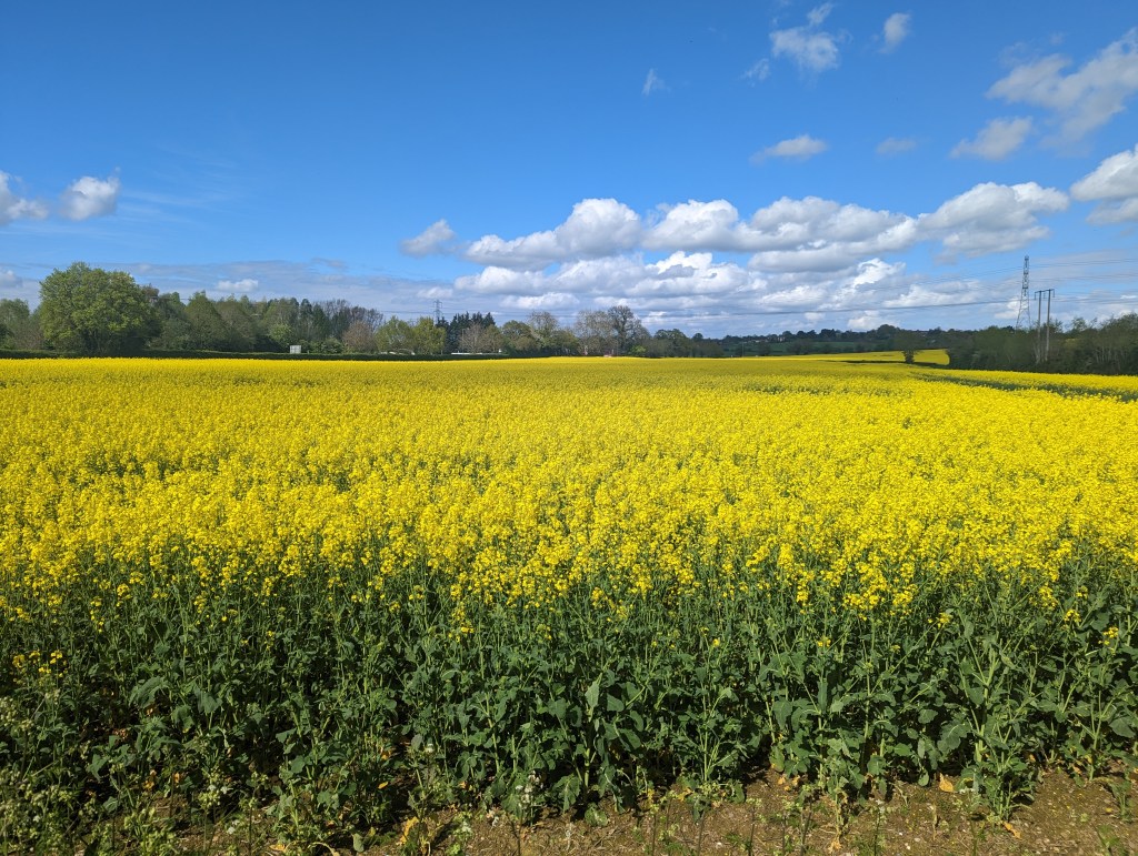 I adore walking at this time of year as the Rapeseed is out in force and it blankets a lot of fields here in Worcestershire. The smell is gorgeous and the sight of it is stunning.