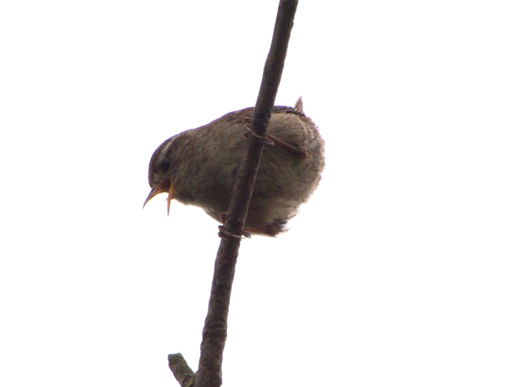 My eyes are drawn to a familiar tree but today I hear the sound of a Jenny Wren, she is also identifiable with the round body and the 50s style streaks of black emanating from the corner of each eye.
