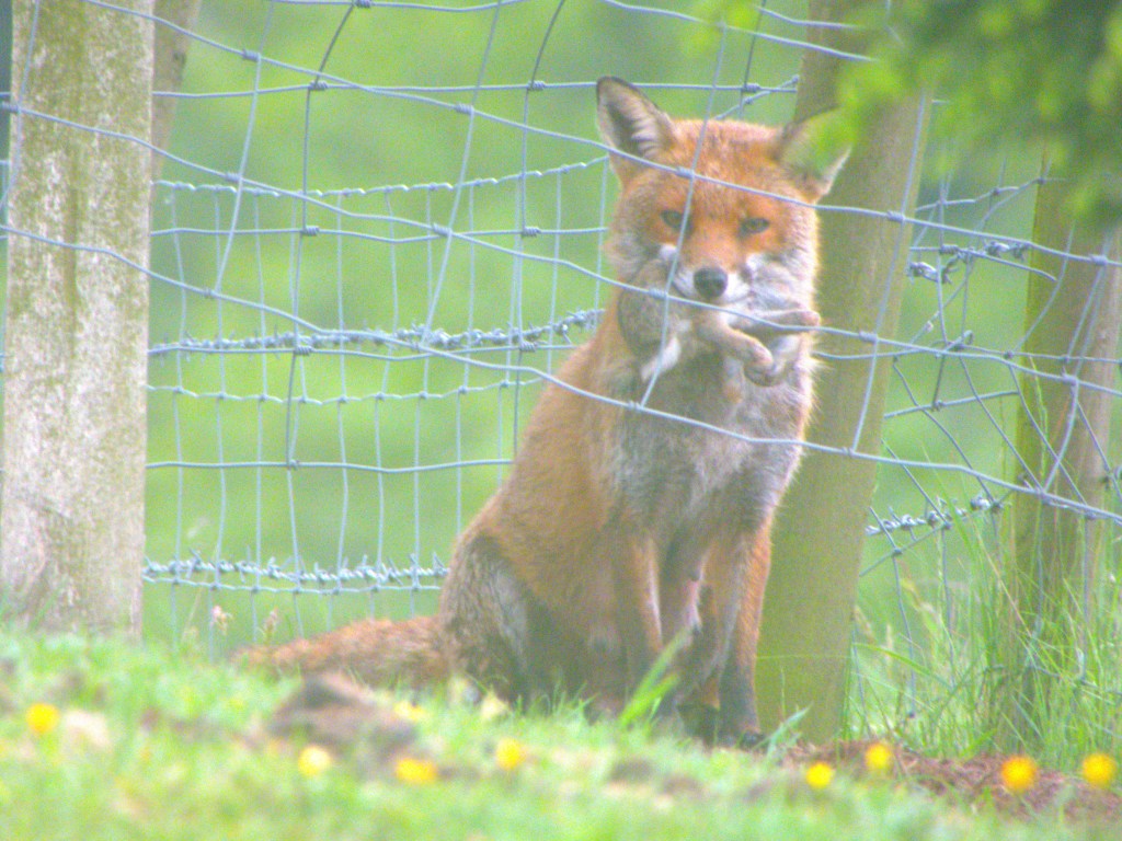 Suddenly, I noticed on the fence line something quite large. A fox turned and fled and disappeared behind a discarded car tyre. Again an animal had been lying in plain sight and I had missed my opportunity. At this time of year there is a lot of long grass and animals can hide there for long periods waiting for you to pass. They are brilliant at staying still and this can make them hard to spot.