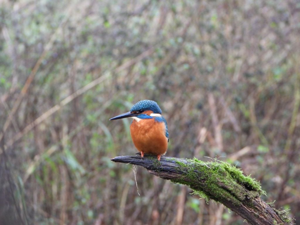 It was there, perched on the bank that I saw him. Small and blue with a striking orange chest. A male kingfisher stood looking at me with great interest. He sat for a moment and as I watched, camera in hand hardly daring to breathe, he was gone in a second.